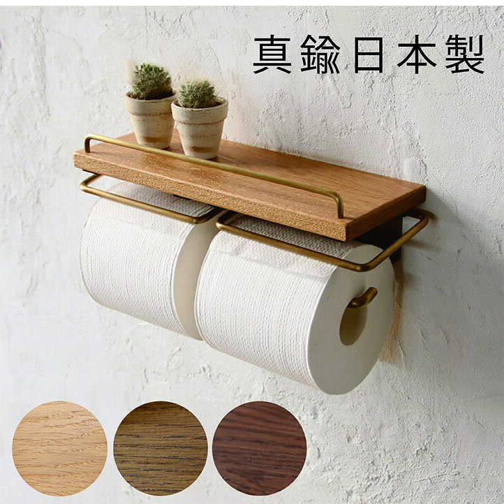 Amazon トイレットペーパーホルダー 2連 真鍮 天然木 木製 棚付き ダブル おしゃれ デザイン ブラスとウッドのwペーパーホルダー Ydj9936 トイレットペーパーホルダー
